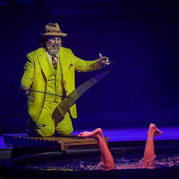 On one side of the stage, a pianist plays live while circus artists perform underwater. Each movement, slowed by water, becomes a meditation on strength, mastery, and grace. This act honors the timeless beauty of circus arts, a poetic homage to artists across generations who embody discipline and creativity.