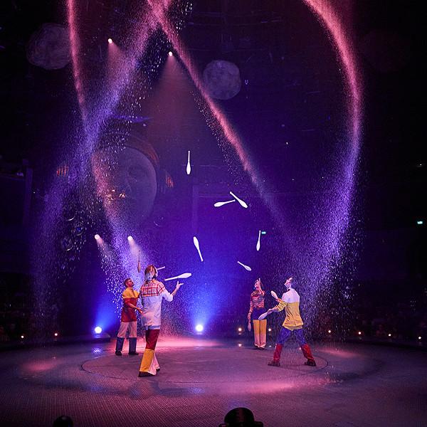 Now a young man, The Visionary surrounds himself with friends who share his love for juggling and theatre, his chosen family. They perform dazzling juggling patterns beneath a water curtain, their movements forming shimmering shapes of collaboration and unity.
