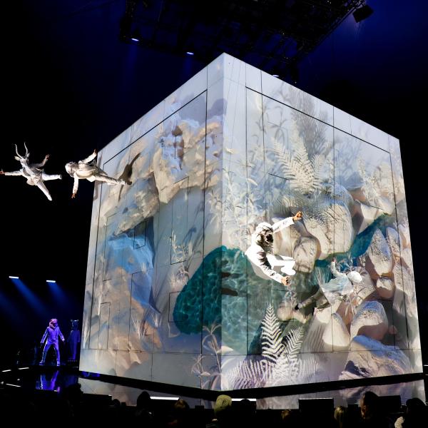 The music of LUDÕ maintains a strong relationship with memory. It guides spectators through the timeline of The Visionary’s recollections and perhaps invites them to reconnect with their own sense of wonder. Links also exist between parts of the preshow and the show itself. Some preshow songs are built upon themes from numbers presented later. For example, A donde vas is based on the music from the artistic swimming act, Conversation with Water, playfully triggering the spectator’s memory.